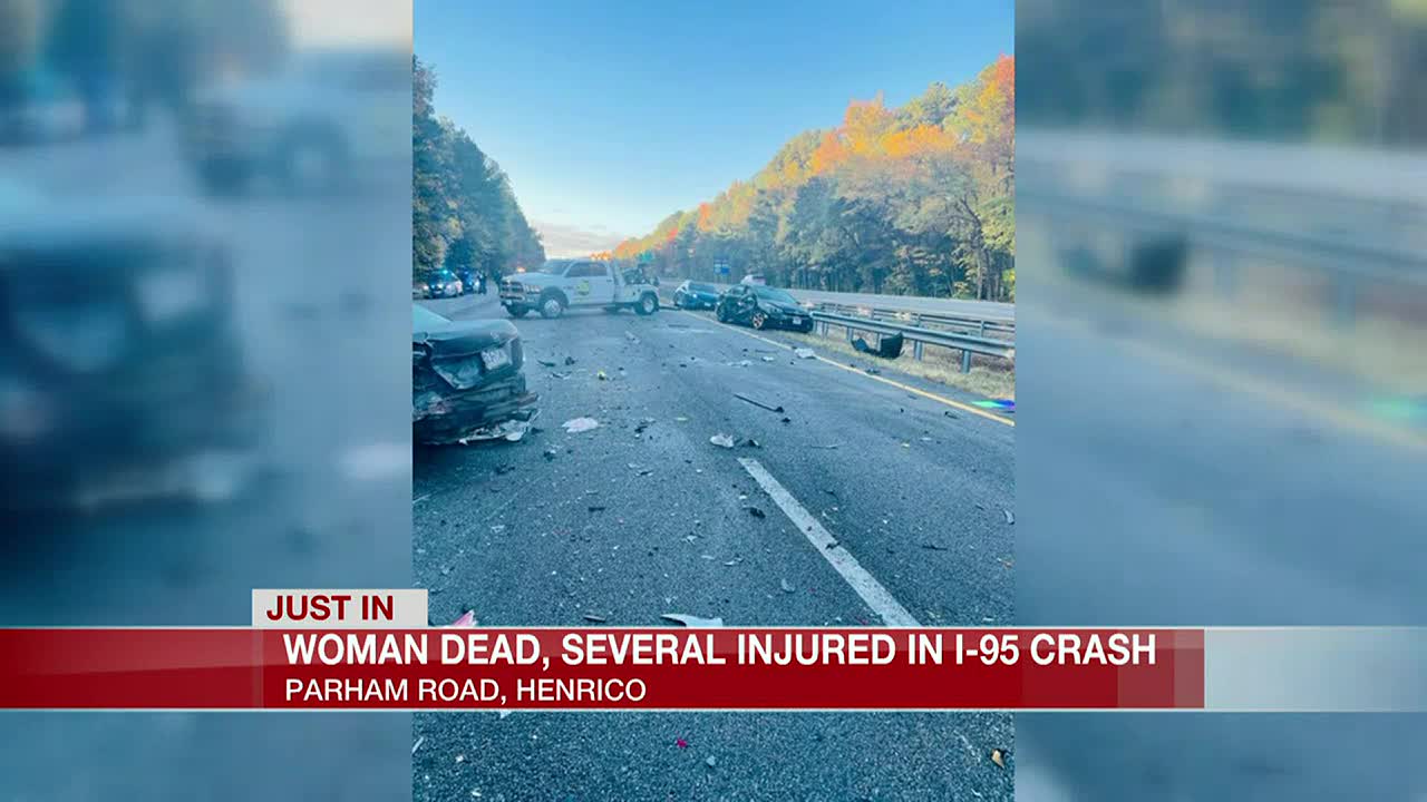 A man who was along Interstate 95 was killed Tuesday morning. Video shows overturned car wreckage from multivehicle Virginia highway crash. A man in his 50s died in a two-vehicle crash early this morning near Punchbowl.