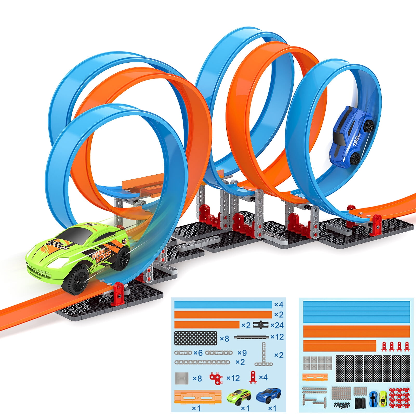 Loop Stunt Race Car Track Set 95 Piece Stem Building Toys 15 Ft Super Long Track 2 Friction Cars For High Speed Race Crash Birthday Gift For 3 12 Years Old Kids Walmart Com